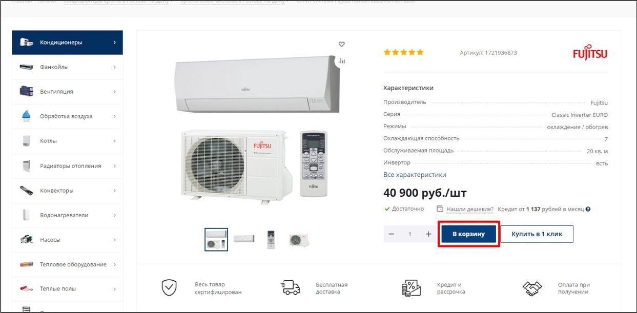 2. Нажмите на кнопку «Добавить в корзину»;